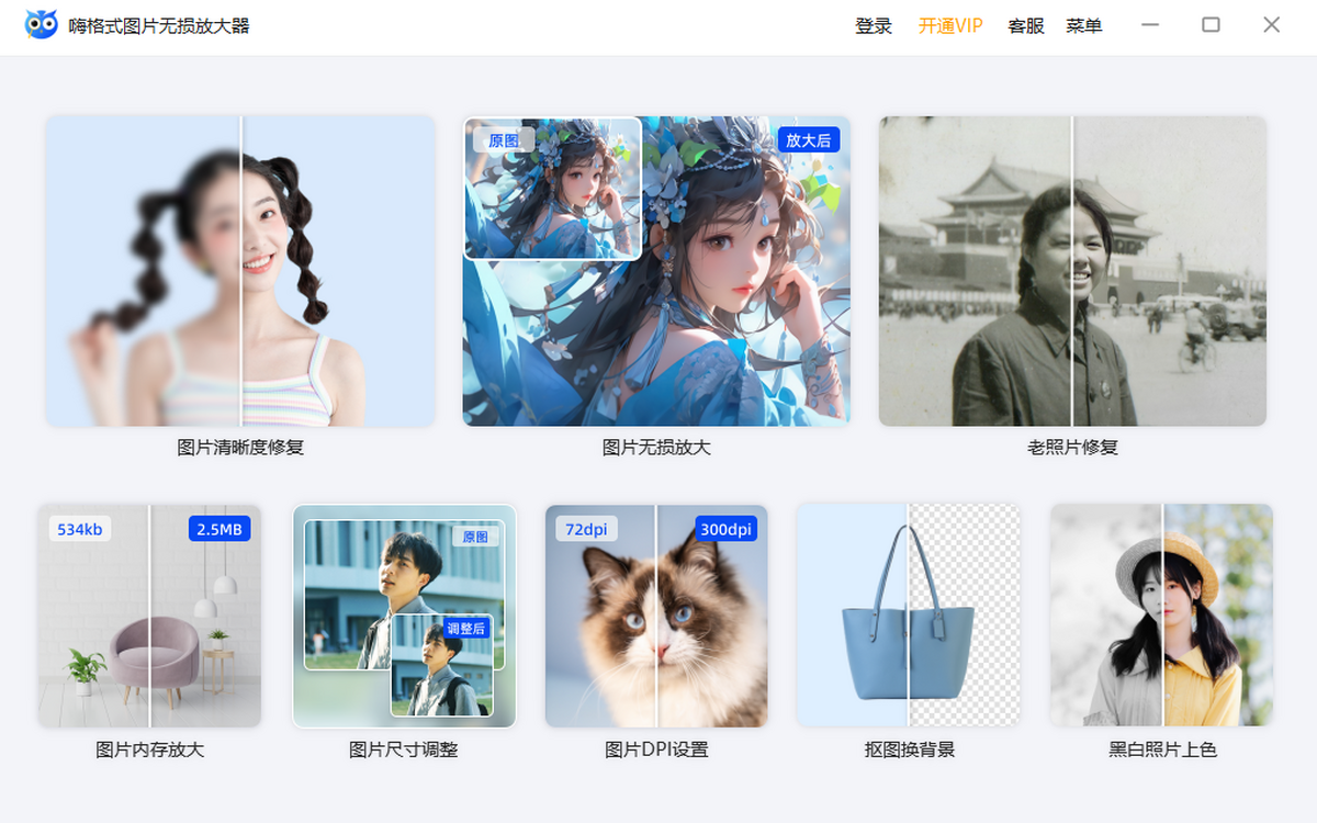 嗨格式圖片無(wú)損放大器是一款專業(yè)的AI圖片無(wú)損放大軟件,支持圖像智能放大(4倍/8倍/16倍)、圖像增強(qiáng)、強(qiáng)力降噪處理,采用專業(yè)的AI人工智能技術(shù),可完美保留圖像質(zhì)量,幫助您在不損失質(zhì)量的情況下放大圖像尺寸,減少噪音和銳化,提高圖像質(zhì)量,使用嗨格式圖片無(wú)損放大器,輕松提高圖像質(zhì)量,操作簡(jiǎn)單,方便省時(shí)。